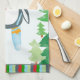 Festive Penguin Skiing Christmas Design Tea Towel