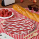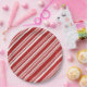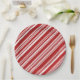 Add stylish flair to your holiday party with paper plates featuring a festive peppermint stripe pattern of red and white lines in varying widths.