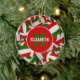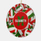 This sporty volleyball themed ceramic ornament features a pattern of seemingly endless, randomly arranged red, green and white volleyballs turned every which way - personalise with name and monogram on the front and commemorative year on the back - by katz_d_zynes