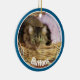 Pet photo Christmas ornament done in a round shape ceramic, with graphics of a blue framed custom photo, on the front with white text. The back is done in blue, red, green and white with graphic text reading Merry Christmas and a custom year your personalise. Add you pet's picture, name and the year for a great holiday ornament to remember your pet.