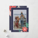 Merry Christmas! Send holiday wishes to family and friends with this floral holiday flat card. It features a navy background with silver stars and dots, and Christmas Holly flowers. Personalise by featuring your favourite photo and name.