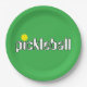 Festive PICKLEBALL Text Bright Green Background Paper Plate