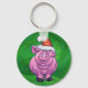 Festive Pig in Santa Hat on Green Key Ring