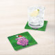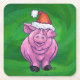 Festive Pig in Santa Hat on Green Square Paper Coaster