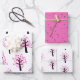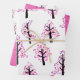 Festive Pink Christmas Tree Snowflake Pattern Wrapping Paper Sheets