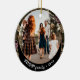 Festive Pink Black One line art Christmas Family Photo Ceramic Ornament. One line art in pink and beige on black background. Festive and modern holiday design with a photo in a round frame. Add your photo, your name and year.