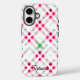 Festive Plaid Pattern Name iPhone 16 Case . Personalise with your name/initial/monogram.
