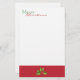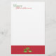Pretty Christmas stationery done in white, with a red on red polka dot band, across the bottom, with graphics of a sprig of holly decorating the middle. Merry Christmas in red and green text, at the top of the stationery, is fully customisable to read what you want. Customise to add text to this this stylish holiday letter paper, or hand write your Christmas letter.