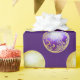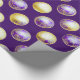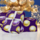 Single custom gift wrap roll of Purple and Gold mix Christmas ornaments with a vibrant purple background.