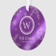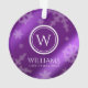 Festive Purple Foil Snowflakes Monogram Name Ornament