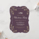 Elegant purple and gold Christmas party invitation featuring gold holly and Christmas bells. Easily personalise this Christmas invite with your party details. This die-cut shape adds an extra special touch and more festive look.