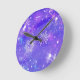 Festive Purple Snowflake Stars Christmas Party Round Clock