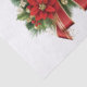 Tissue paper with a festive Christmas bow in red and gold. Surrounded by poinsettia flowers, pine and Christmas decorations.