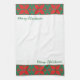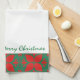 Unique modern floral design in red and green with MERRY CHRISTMAS in green script lettering. Celebrate!