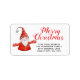 These stylish personalised Xmas return address labels with Merry Christmas saying feature a cute gnome in red apparel on a white background and a template text to customise with your address.