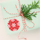 Holiday stickers / envelope seals feature a nordic pattern of white snowflakes and dots. The red background can be customized.