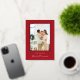 Share your holiday joy with this Festive Red White Script Name Christmas Photo Gold Foil Frame Holiday Card. The front of the card features a stunning gold foil frame around your photo, accented by elegant white script on a bold red background. The back offers additional space for a second photo, keeping the focus on your cherished memories. Perfect for those who want to combine classic holiday colours with a touch of gold foil luxury.
