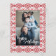 Chic simple Holiday season greeting card with a pretty and modern script font on a trendy contemporary Holiday season classic red and black Fair Isle motif pattern design. With the option to customise or personalise with a photo of your choice on the front, and a personal message on the inside. Vintage, yet modern classy design for the lover of winter and December holiday themes. Available on a variety of modern crafts and office products. Such as wrapping and tissue paper, gift tags, bags and favour boxes, stickers, ribbons, stationery, and envelopes.