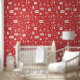 Festive Red Christmas Holiday Gifts Decorations Pattern Wallpaper features a red and white Christmas pattern of festive holiday gifts, snowflakes, modern typography and more. Perfect for Christmas decor, holiday decor, home decor, wall accents and treatments, office decor and party decor. Created by Evco Studio www.zazzle.com/store/evcostudio