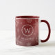Add a festive touch to year-end and Christmas celebrations with this elegant mug, which features snowflakes falling on a faux metallic red foil / ombre / moire background. Add initial / monogram (or logo), name, year, or custom text as desired.