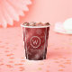 Add a festive touch to year-end and Christmas celebrations with these elegant paper cups, which feature snowflakes falling on a faux metallic red foil / ombre / moire background. Add initial / monogram (or logo), name, year, or custom text as desired.