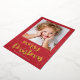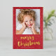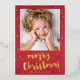 A festive red and gold foil pressed Christmas holiday card featuring a single photo, calligraphy script merry Christmas and confetti border. The back has an editable personal message that can be added to or moved around. Add additional photos to the backside to showcase more of your year. Click the edit button customise this design.