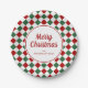 Personalised Festive Red Green Checks Merry Christmas Paper Plates.