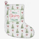 Celebrate the holiday season with this charming Merry Christmas Stocking. Featuring elegant script lettering paired with whimsical Christmas trees and festive ribbons, this design brings a touch of warmth and joy to any home. Its sure to add a cheerful and merry touch to your Christmas celebrations and can be personalised with your loved ones name.