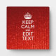 Your personalised Keep Calm saying on a fine custom fire red glamour style decor. A personalised Keep Calm style saying on a one of a kind gift. Humourous or whimsical try on your creative words on two editable lines of text. Remember to use CAPITAL letters for best results.