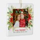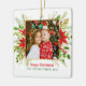 Festive Red Poinsettia Christmas Kids Photo Ceramic Ornament