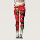 Festive Red White Floral Poinsettias Leggings