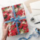 Festive Red White Floral Poinsettias Wrapping Paper
