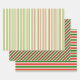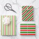 These fun, festive designs feature Christmas and holidays style striped patterns having colours like green, white, and red. Festive wrapping paper sheets like these might be fun to use when wrapping presents being given when celebrating Christmas.