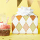 Fun retro diamond seamless pattern in soft warm earthy tones of orange, pink and beige with faux gold border on white background, for the October / November fall festivities, holiday season gift wrapping, birthday, baby shower or any other occasion.