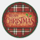 Festive Round "Merry Christmas" Rug with Plaid and Classic Round Sticker
