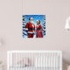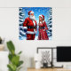 Santa Claus and Mrs. Claus stand amidst a picturesque snowy forest, evoking festive holiday joy and cheer in a serene winter setting.