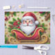 A cheerful depiction of Santa Claus in a red sleigh amidst festive decorations including pine cones and ornaments. Perfect for holiday-themed designs and Christmas celebrations.