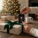 Add a touch of classic elegance to your holiday presents with this stunning 'Merry Christmas' gift tag. Featuring a jolly, waving Santa Claus framed by a luxurious circular wreath of golden pine branches and delicate snowflakes, this design stands out beautifully against a sophisticated black background. Complete with charming green pine trees and a festive holly motif, it offers a high-contrast look that is both traditional and modern. Perfect for those who want their gift wrapping to exude warmth and premium quality this festive season.