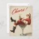 This playful Christmas artwork features a jolly Santa lounging inside a martini glass, raising a cocktail with a joyful grin. The painterly vintage style and bold “Cheers!” lettering create a fun, celebratory mood. Perfect for festive décor, holiday cards, party invites, and gifts that bring humor, charm, and spirited Christmas cheer.
