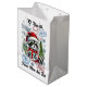 A delightful Santa sack brimming with holiday spirit features a joyful racoon in a Santa hat, holding a gift. The sack is decorated with vibrant holiday , enhancing the cheerful atmosphere perfect for the festive season.