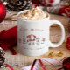 Add you family name or a persons name to create cute personalised mug featuring one watercolor painted santa and four funny snowmen on a creamy background.
