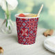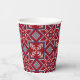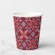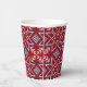 Paper party cups with festive Scandinavian / Norwegian knitted winter sweater pattern in red white and blues.