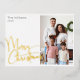 Festive Script Photo Merry Christmas Gold Foil Holiday Postcard