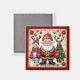 A festive design with a snowman, Santa, deer, and a decorated Christmas tree, set against a golden, dotted floral background, evoking warmth and holiday magic. "Original Image was generated by Meta AI. AI generated artwork. Licensed under CC BY-SA 4.0."