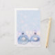 Stationery paper with a magical Christmas design. Christmas tree decorations sitting together on some white snow. The background has a white bokeh (blurred lights) pattern with falling snowflakes. Perfectly captures the wonder and magic of Christmas.