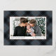 This classic and elegant custom "Happiest Holidays" Christmas holiday card features a landscape photo framed by a festive and rustic chic slate gray blue and black tartan plaid pattern with real rose gold foil accents. Personalize with your choice of holiday greeting, the modern family signature in script writing, the year, and choose to include an additional message on the back of the card. Two additional photo spaces are also included on the back.