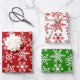 Festive Snowflake Red Green Christmas Wrapping Paper Sheet