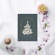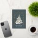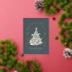Festive watercolor snowy Christmas tree, modern gold foil holiday card.