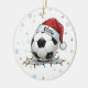 Festive Soccer Ball Holiday Design with Snowflakes and Sparkles Ceramic Ornament