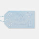 Lovely light blue and white design has a frosty, textured appearance. Customisable text reads, "Happy Hanukkah" on one side and "To:" and "From" on the other. Graphics include Star of David, Menorah, dreidel, ten commandments tablets, snowflakes and a snowman.